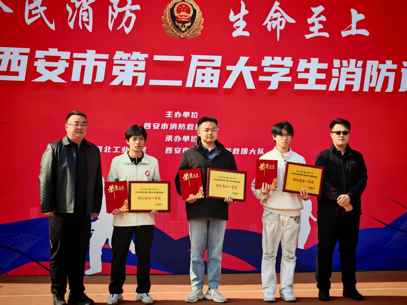 11月15日,西安市第二届大学生消防运动会在西北工业大学长安校区火热开赛,保卫处龚成、李丁带领我校14名学生志愿消防队员在比赛中沉着冷静、顽强拼搏、奋勇争先,在西交大、西工大等39支参赛队伍中取得消防知识理论测试团体一等奖、消防技能比赛团体三等奖的好成绩,以实际行动践行2025年消防宣传月“全民消防、生命至上——安全用火用电”主题,展示了我校学生志愿消防队员扎实的消防安全素养和过硬的实战能力。